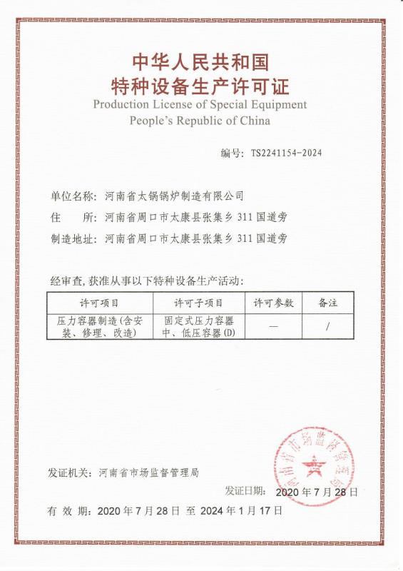 河南省太鍋鍋爐制造有限公司(原河南省太康鍋爐廠始建于1976年)始建于70年代初,經(jīng)40多年的艱辛探索,靠科技興業(yè),走科學管理之路,現(xiàn)已發(fā)展成為承接制造、安裝、設計大、中型供熱系統(tǒng),生產:SZS燃油燃氣蒸汽鍋爐、燃煤蒸汽鍋爐、燃油鍋爐、燃氣鍋爐、電加熱鍋爐、生物質鍋爐、茶水鍋爐、有機熱載體鍋爐、熱風鍋爐,蒸壓釜、燃油蒸汽鍋爐、燃氣蒸汽鍋爐、燃油熱水鍋爐、燃氣熱水鍋爐并承擔安裝120噸熱水鍋爐、蒸汽鍋爐,生物質鍋爐,加工制造一、二類蒸壓釜、壓力容器,化工機械的省一級**企業(yè)。